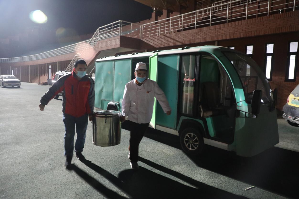 为了6点能按时开始检测,后勤服务中心的工作人员凌晨5点多就集合就位。