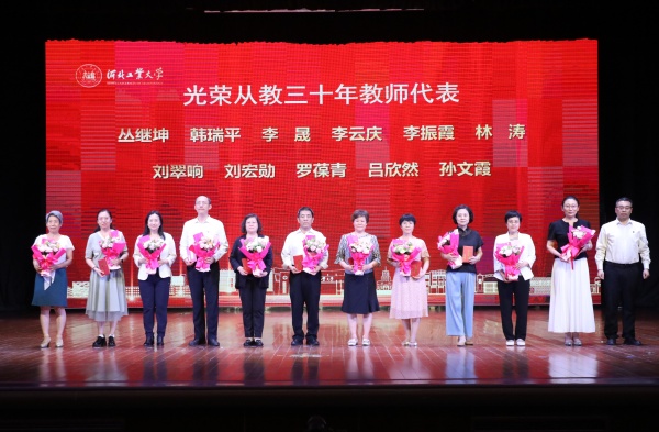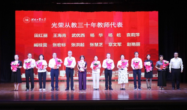 光荣从教30年教师代表、电子信息工程学院教师刘翠响深情回顾了执教生涯。她表示,是学校的培养与学生的信任支撑自己一路走来,希望青年教师能坚守教育初心,将工大的优良教风和学风传承下去,让教育的薪火生生不息。