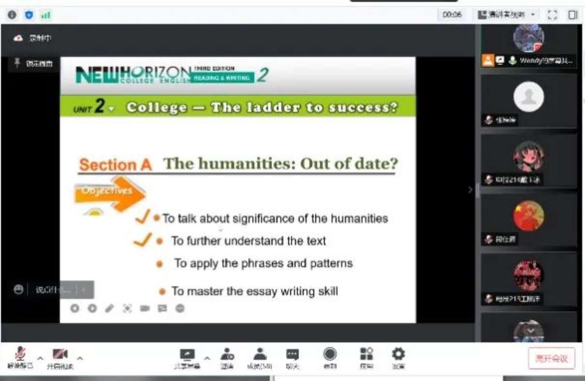 各位领导先后进入到《大学英语基础模块B》《工程电磁场》《环境影响评价》《思想道德与法治》《概率论与数理统计》等23个本科生课堂,《当代国外马克思主义前沿问题研究》《拓扑图论和纽结理论初步》《电子科学中的数值方法》等5个研究生课堂,了解到老师们课前准备充分,线上教学工具使用熟练,授课节奏和课堂掌控俱佳。有的在课件制作上下足功夫,教学内容丰富、图文并茂;有的充分利用新版雨课堂与腾讯会议对接优势,结合案例灵活切换两个平台,增强了学生的课堂沉浸感;有的通过在线互动,深入浅出的讲解重点和难点。期间各个课堂在线教学进程连贯,师生精神饱满,教学效果得到领导们的一致肯定。