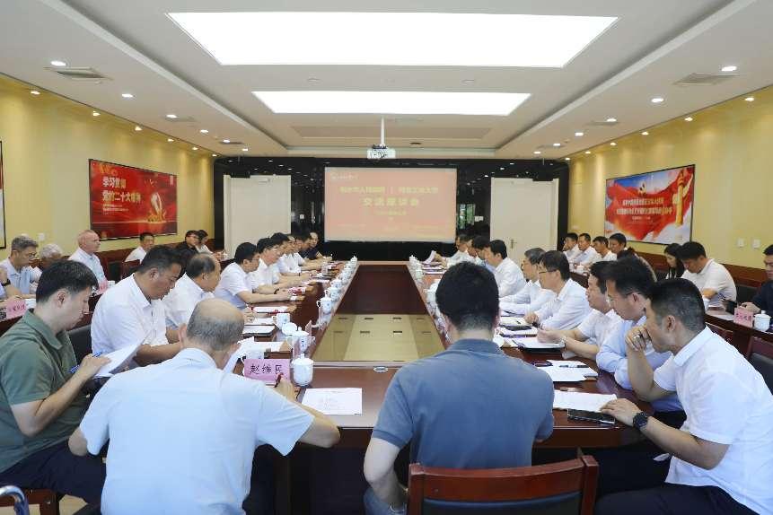 9月18日,衡水市政府市长董晓航一行莅临taptap点点官方网站,就深化校地合作、拓展合作领域等事宜进行对接交流。校党委书记韩旭在学校图书馆会议中心与董晓航一行进行了座谈交流。校党委常委、副校长李子彪主持座谈会。