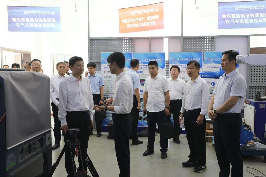 会前,董晓航一行在校党委常委、副校长李子彪的陪同下,先后参观了taptap点点科技成果超市、先进装备工程与技术研究院和智能康复装置与检测技术教育部工程研究中心,详细了解了学校在先进装备、电子信息、新能源、新材料、智慧康养等产业领域的科技成果研发及其产业化情况。