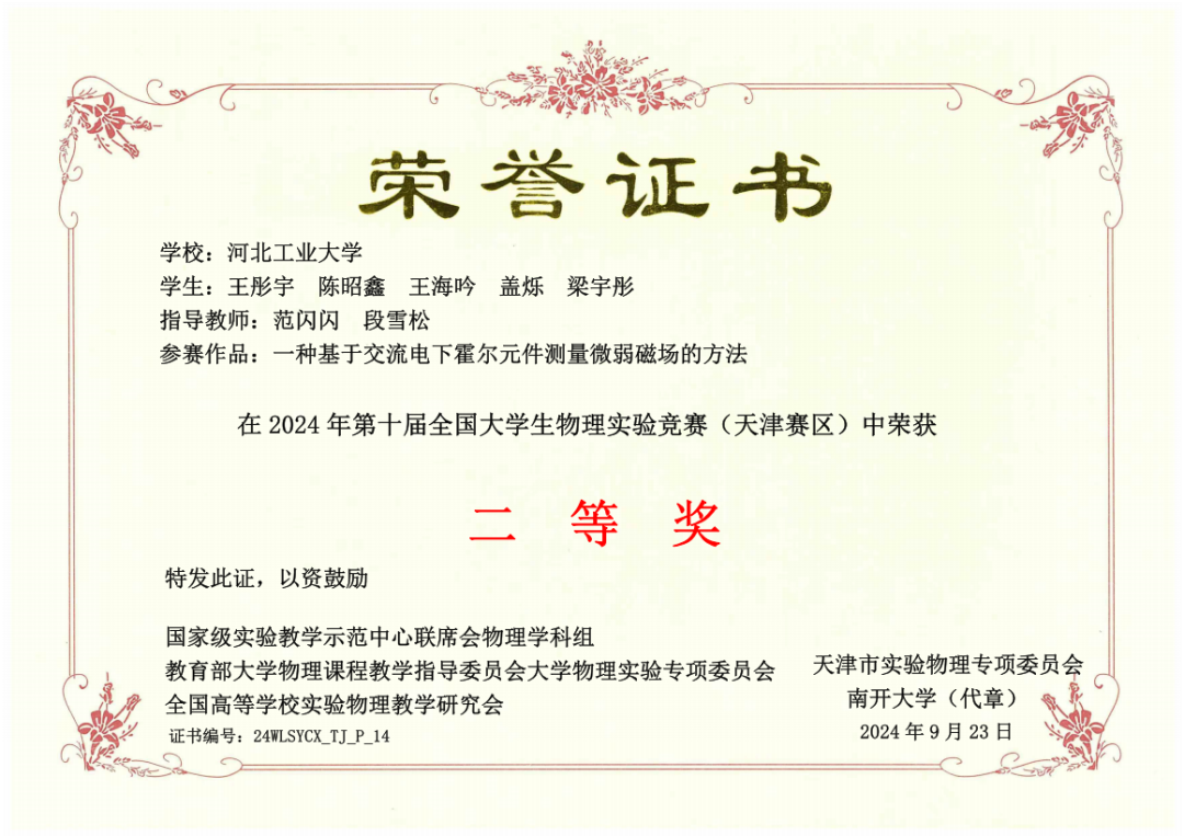 理学院学生获第十届全国大学生物理竞赛(天津赛区)二等奖