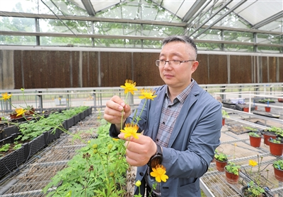 耿金鹏教授观察太空金莲花S1代突变情况