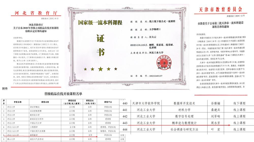 坚持推进教育教学改革,理学院在专业建设、团队建设、课程建设等方面涌现出一大批优秀典型。应用物理学、信息与计算科学获批国家一流专业建设,应用统计学、数学与应用数学获批河北省一流专业建设,2024年应用统计学在省级一流专业建设点验收中获评优秀。信息与计算科学等3支教学团队获批河北省优秀教学团队。汪大云老师负责的《大学物理I》获批国家级一流课程建设,《矩阵论》等6门课程获批省级精品课程或一流课程建设,《线性代数》等19门课程获批校级一流课程建设。五年来,学院教师潜心教书育人,重视教学改革及教学能力提升,获批教育部协同育人项目10项、省级教研项目19项、校级教研项目37项。金少华老师荣获全国优秀教师荣誉称号,1人获河北省教学名师,1人获河北省创新创业教学名师,2人获校级教学名师称号。汪大云老师在第三届全国高校教师教学创新大赛中获国家级一等奖,5人次荣获省级教学竞赛一二等奖,209人次荣获校教学质量优秀教师称号。