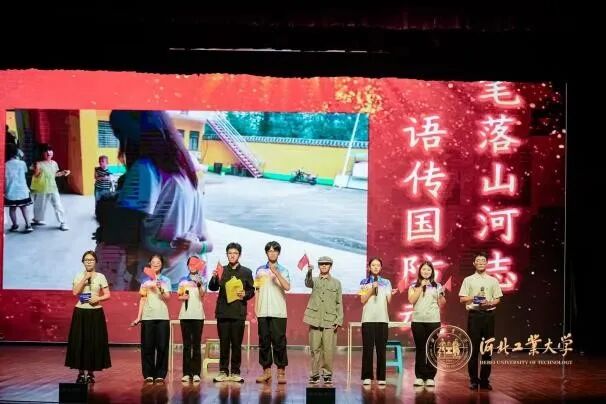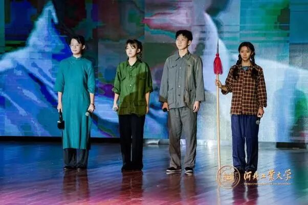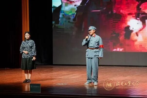 全体师生庄严肃立,默哀致敬:向抗日战争中毁家纾难捐躯太行的杨十三先生、驰骋疆场血染冀东的洪麟阁、保护群众撤离壮烈牺牲的赵观民三位抗日英烈致敬,向学生运动领袖谌志笃、隐秘战线奋战先锋吕一鸣,工人运动领袖黄爱,渭华起义牺牲的卢绍亭致敬,向河北省立工业学院投笔从戎、舍生报国的“工字团”先辈致敬,向所有为中国人民解放事业的革命先烈致敬!