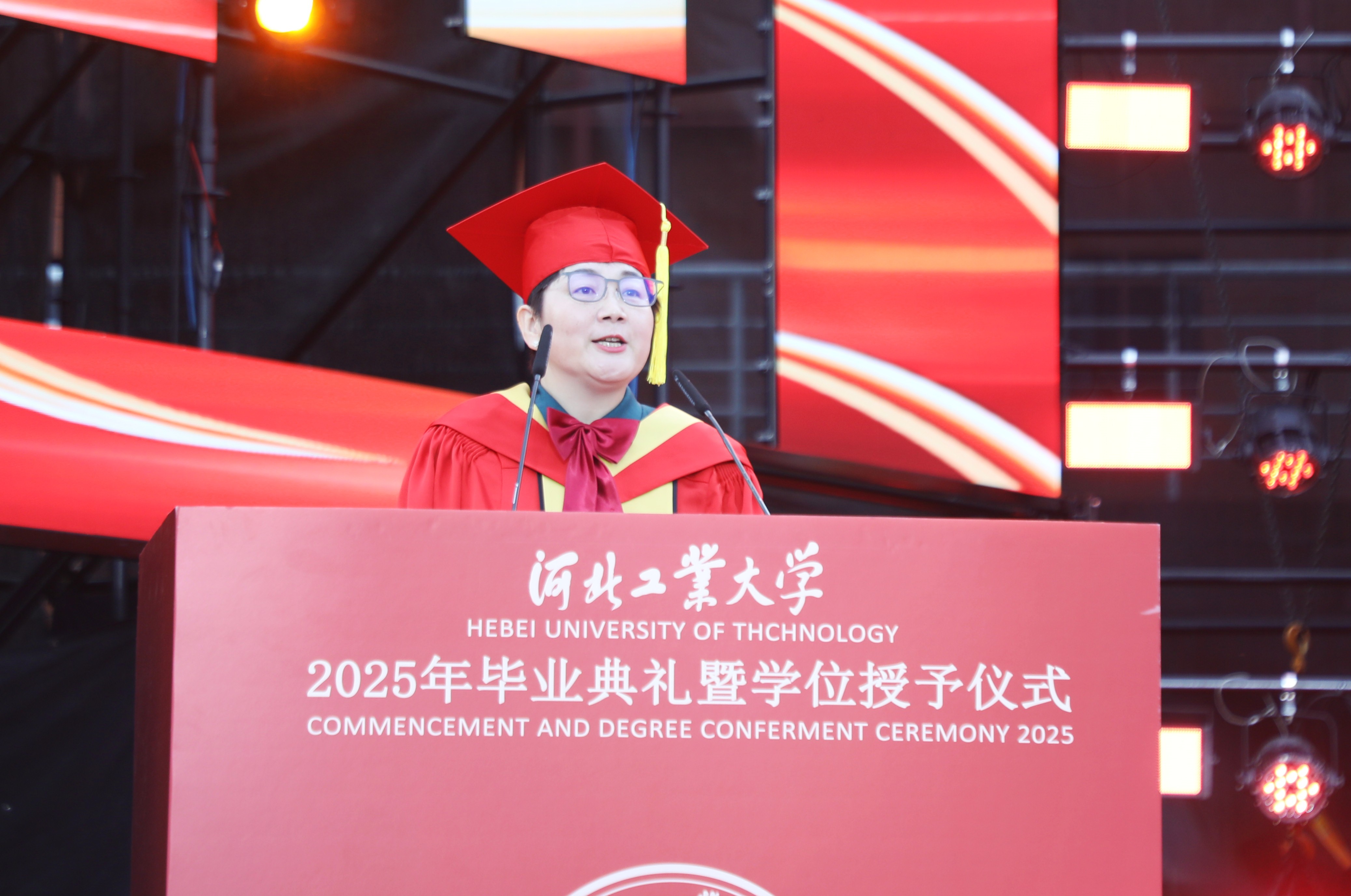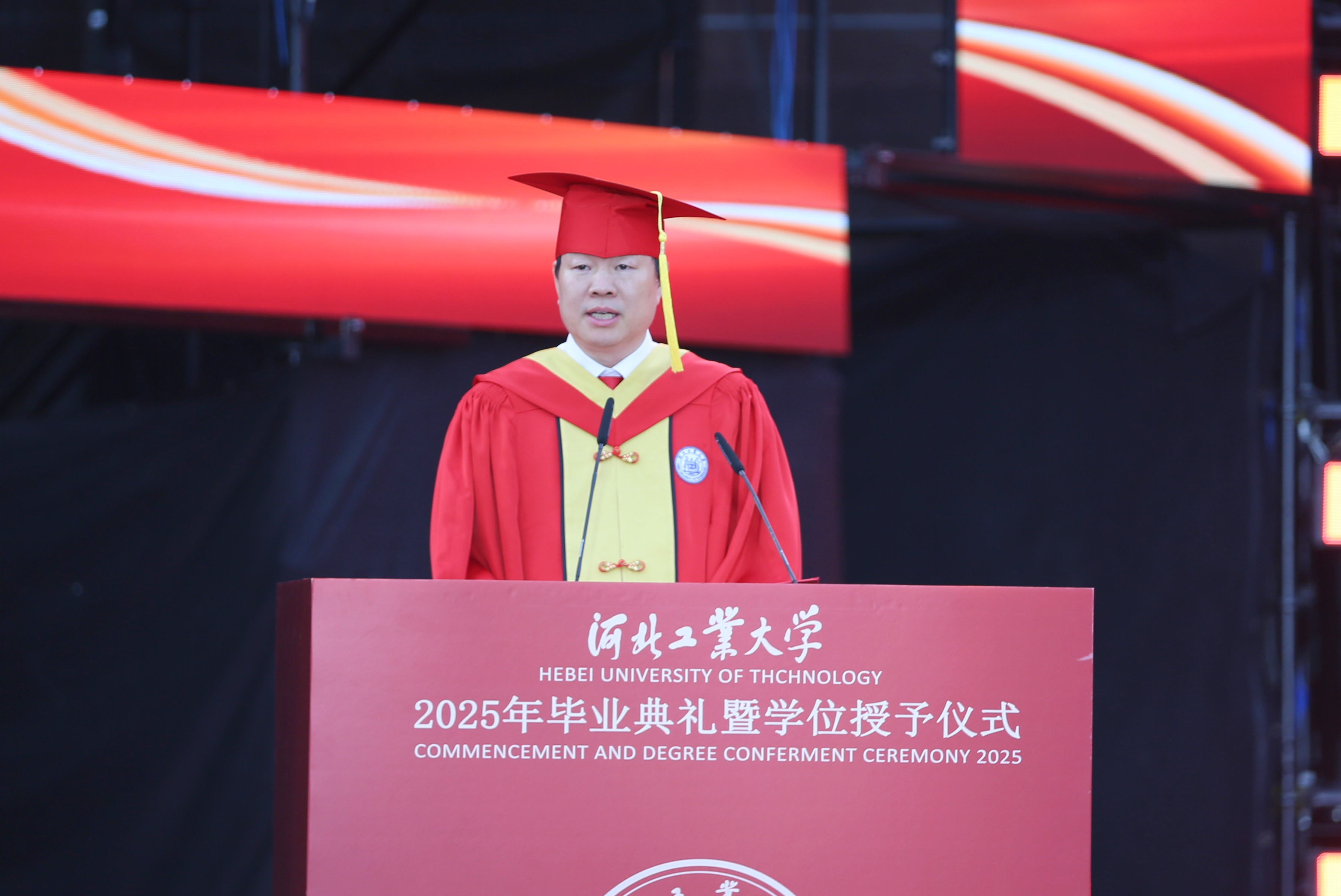 典礼上,全体校领导为2025届“最美毕业生”颁奖,为2025届博士、硕士、本科生和留学生毕业生代表授予学位。