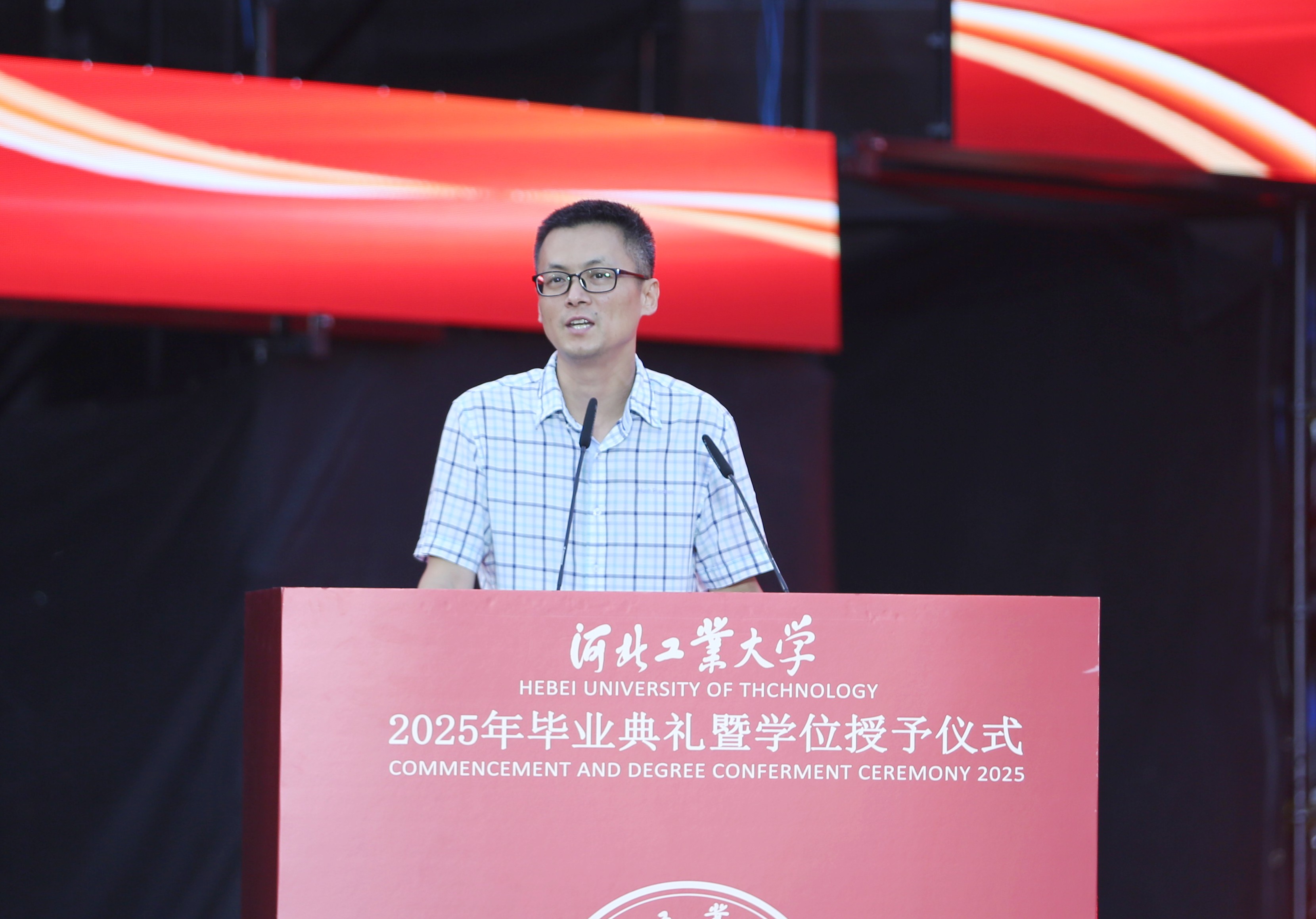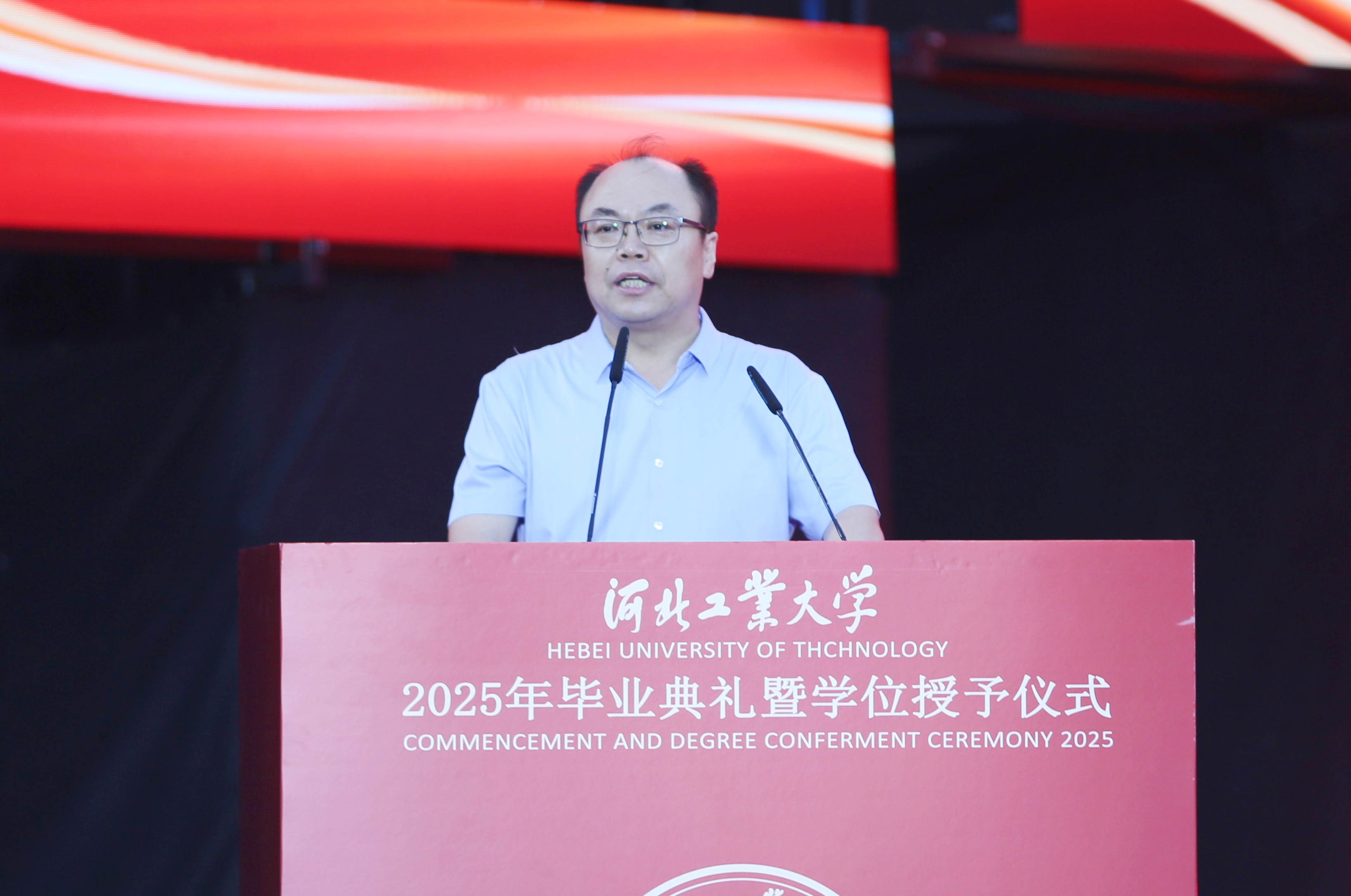 王利民表示,在校数载,同学们在河北工大这片沃土上践行“勤慎公忠”的校训精神,经历“工学并举”的双重锻炼,留下了难忘的青春记忆,也形成了“和而不同”的独特精神。一路走来,大家刻苦学习、快乐实践,不忘初心、力争上游,每一份付出都闪闪发光,每一份平凡都创造不凡,学校取得的发展成绩离不开大家逐梦攀峰的勇气和不舍昼夜的拼搏。