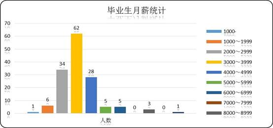 毕业生主要工作单位为软件开发、销售和网络服务等企业,就业区域主要集中在江西、广东、上海、深圳、浙江和江苏等,其中有一名学生升入本科继续深造。 大部分毕业生就业单位企业规模在100人以上,个别毕业生就业单位企业规模在4000人以上,60%以上用人单位提供三险一金等。毕业生就业半年内岗位起薪3000以上,薪水位于计算机行业中等,部分可达到本科院校毕业生水平。在岗一年时薪水平均达到4000以上,个别毕业生达到6000以上,达到计算机行业中等偏上水平。(下图是09级NET毕业生就业情况)