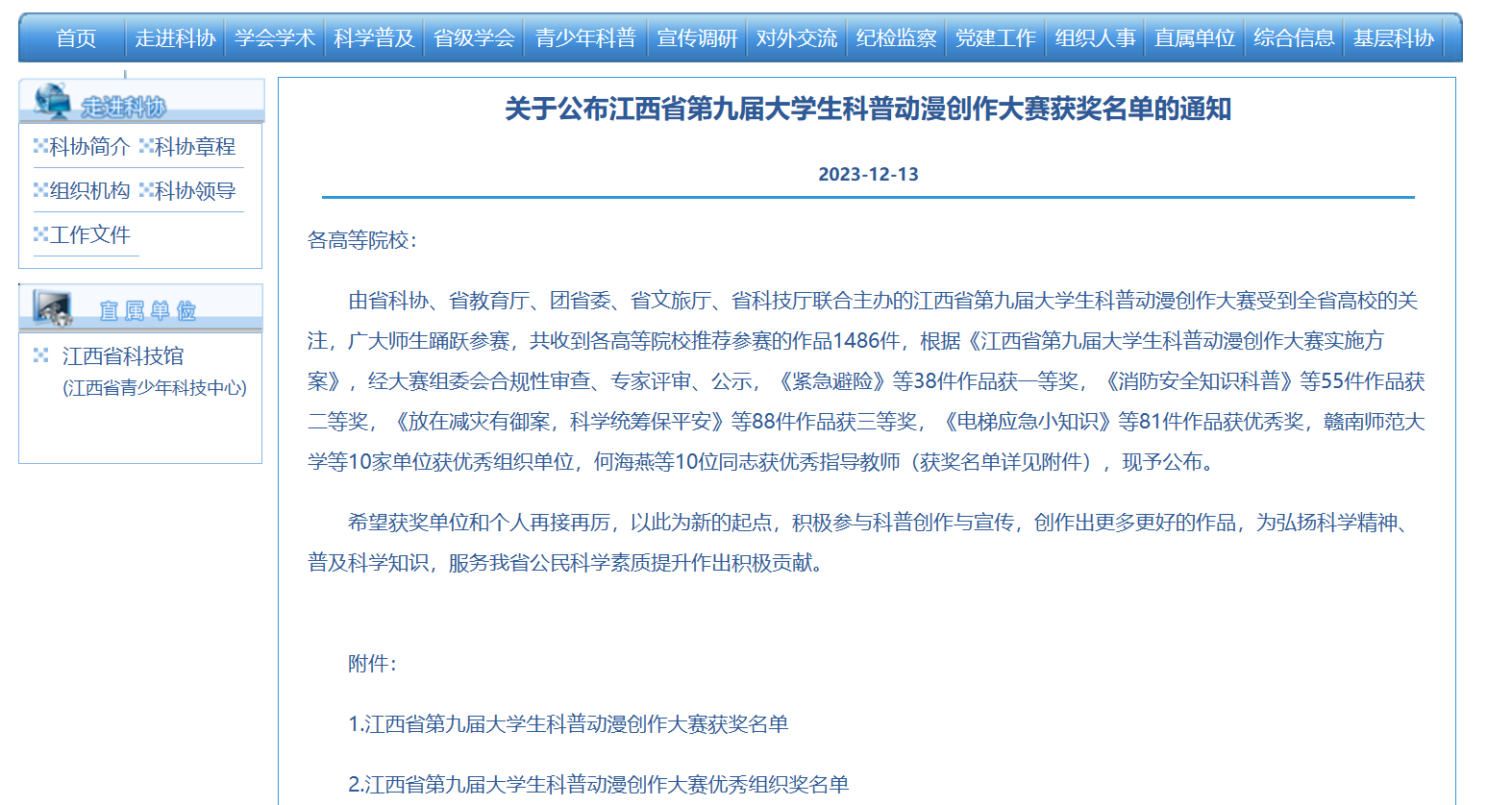 近日,江西省第九届大学生科普动漫创作大赛公布成绩,经大赛组委会合规性审查、专家评审、公示,365官网师生喜获佳绩。
