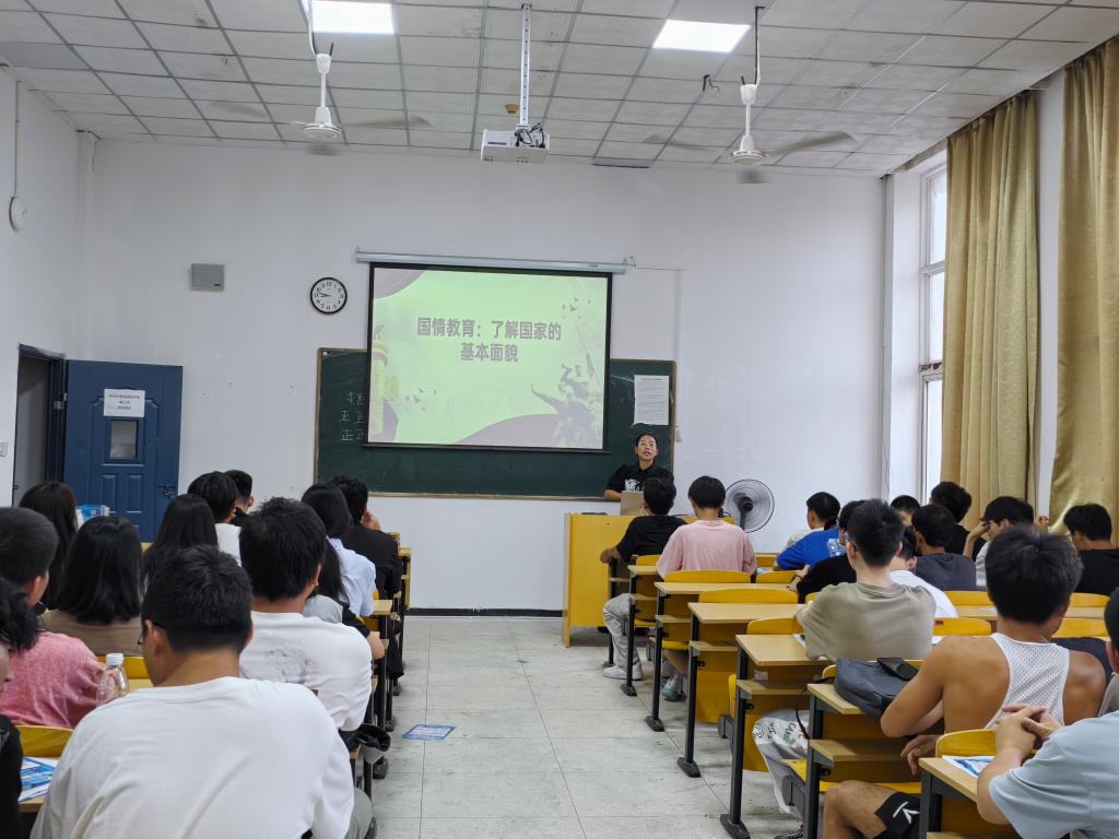 辅导员及班主任带领班级学生共同学习了国家的政治、经济、自然生态等方面的基本情况,并通过一系列活动加强了爱国主义教育。在班会的最后,辅导员邀请每位同学分享自己的学习体会和未来的行动计划。鼓励同学们将爱国情感转化为学习动力,为成为国家的有用之才而努力。