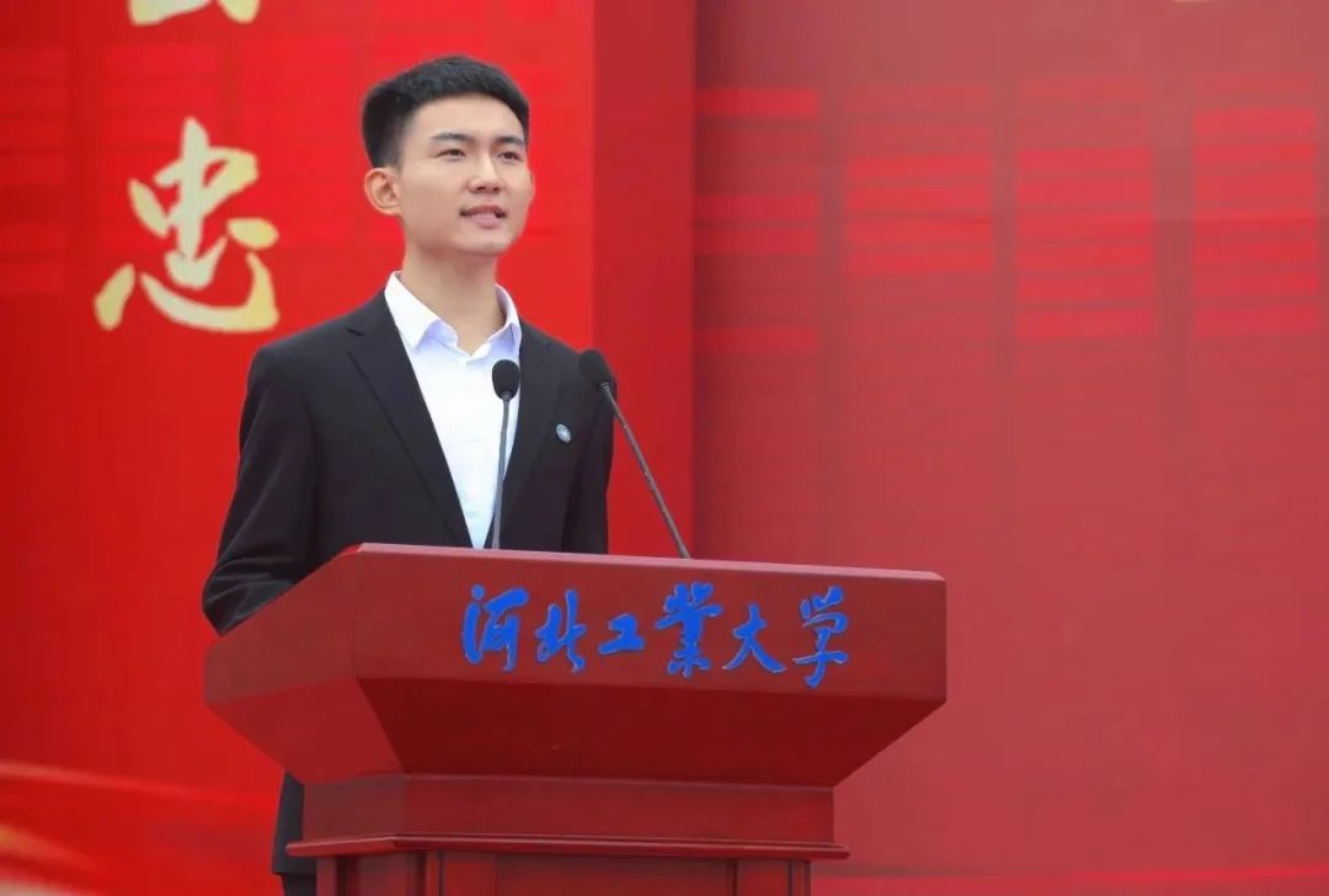 在校生代表、校学生会主席李泽阳同学代表两万多名在校生向2023级新生表示热烈的欢迎和美好的祝愿。他期待学弟学妹们能够在工大不负青春韶华,不负时代重托,不负师长和母校辛勤培育,努力成为中华民族伟大复兴的先锋力量。
