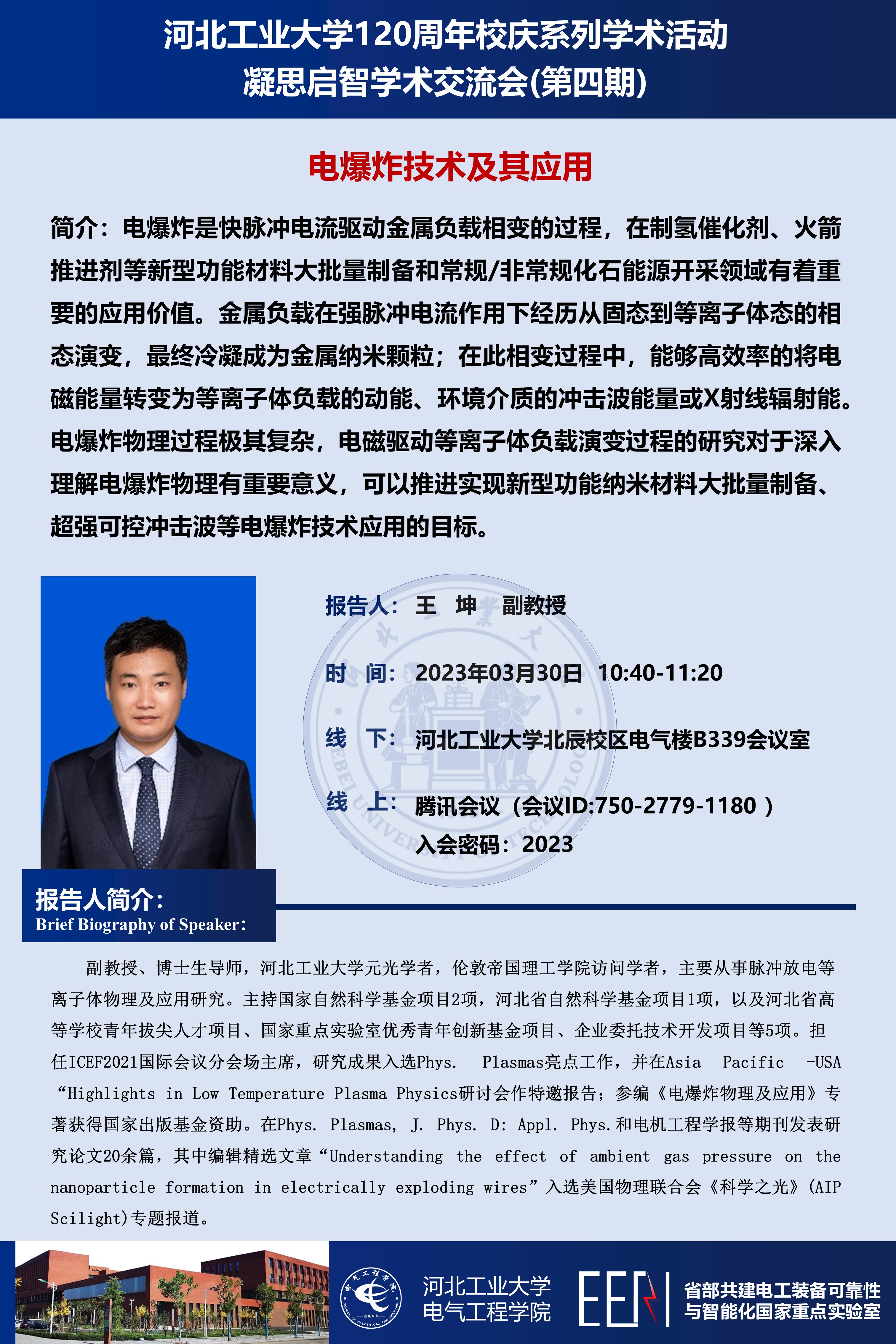 凝思启智学术交流会(第四期):面向运载交通的高效电能变换装置及先进控制技术,电爆炸技术及其应用