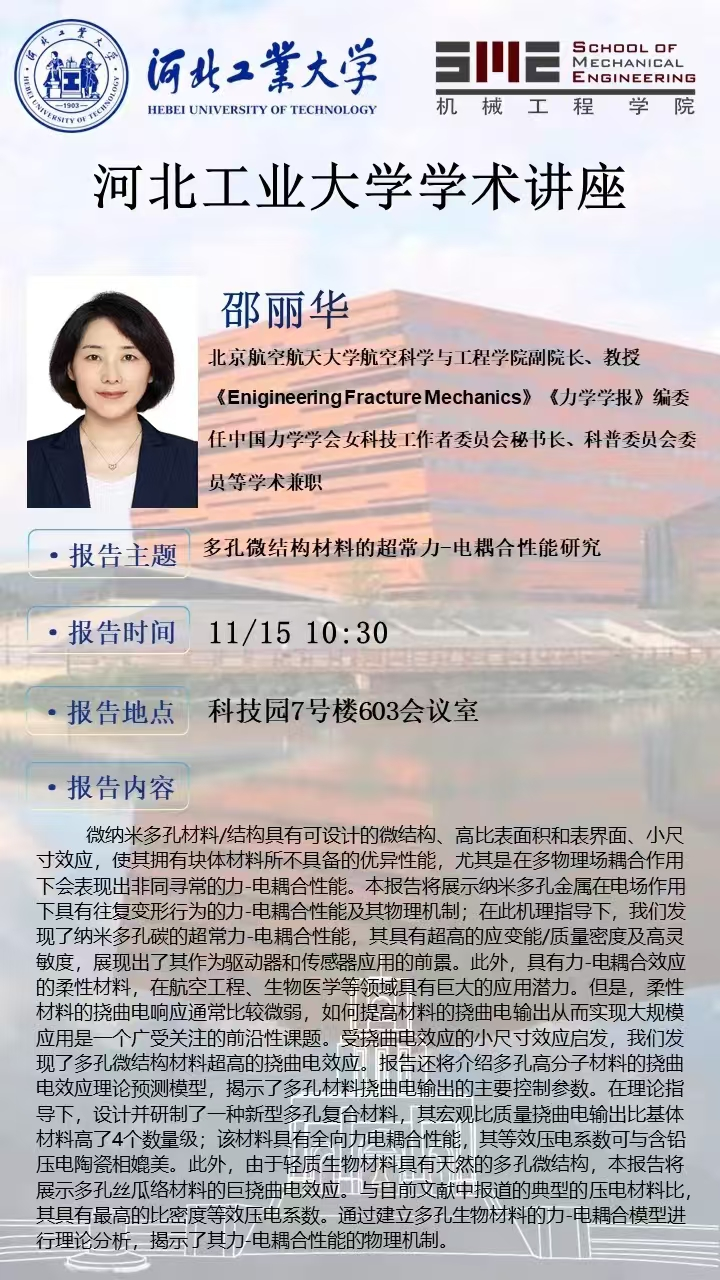 学术讲座:多孔微结构材料的超常力-电耦合性能研究
