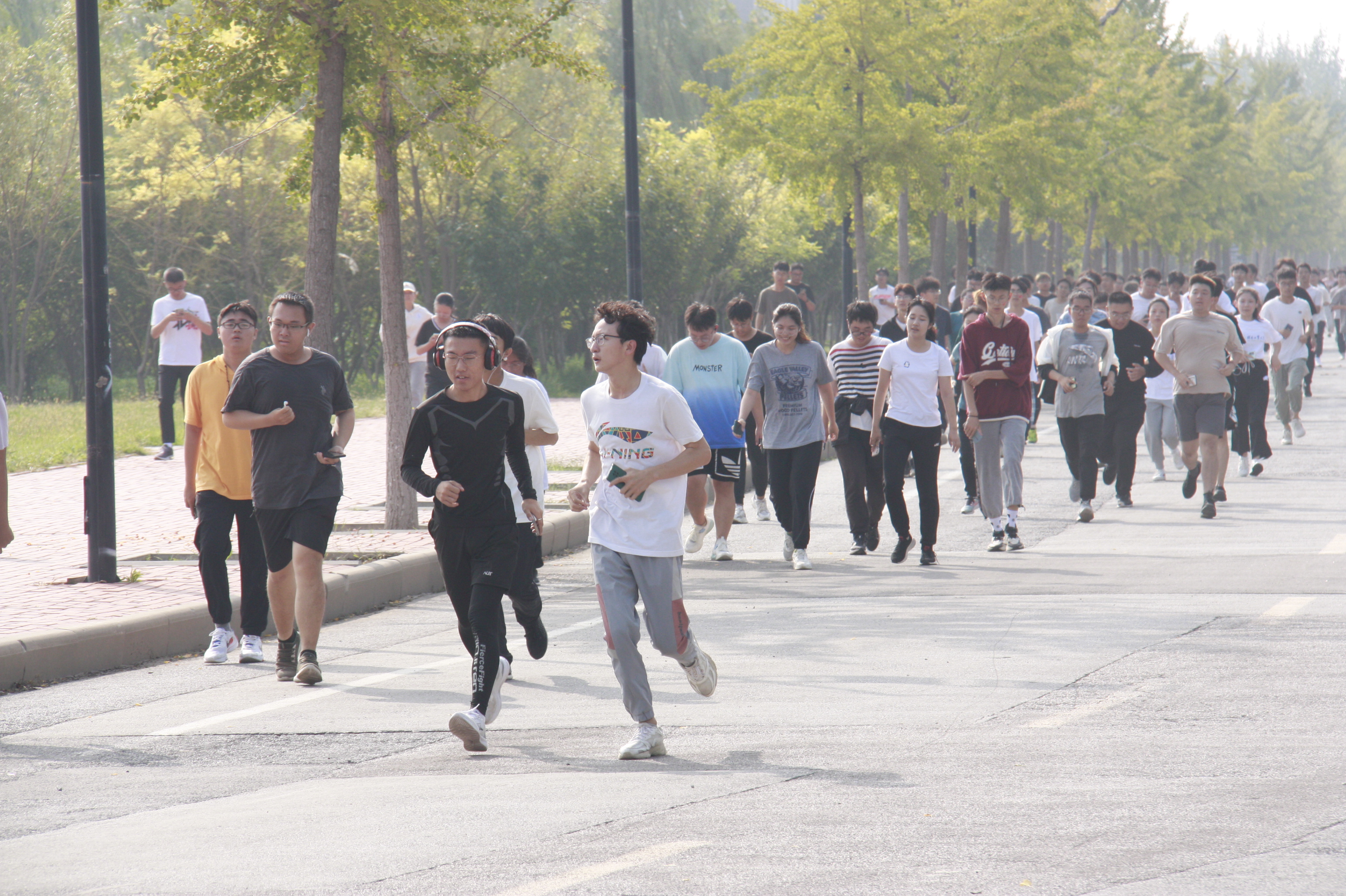 上午9时,同学们相约体育中心。随着校党委常委、副校长段国林鸣枪开跑,参与者热情满怀,即使汗如雨下,他们仍步伐昂扬,坚定向前。