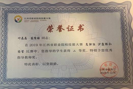 本专业培养为了弘扬工匠精神,提升学生对企业经营和管理所需综合能力的认知,加深学生对企业发展规律的了解,学生在校期间,教师带领学生参加由江西教育厅主办的江西省职业院校技能大赛(高职组)沙盘模拟经营技能竞赛,近年来,也取得相应的成绩。